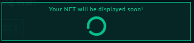 - Be patient and wait for the Blockchain to complete the transaction. - You should then see the 'Your NFT will be displayed soon!' message.